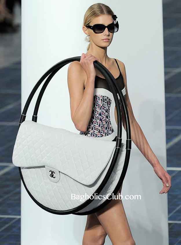 Chanel is getting all the attention these days and it’s not for the classic 2.55 quilted bag they are known for. How about for a hula hoop inspired bag? To hang on the wall or to actually carry. That remains to be seen. The puzzle is, what kind of shoes would you wear with this work of art? Yes we know, It’s mind boggling but think of it from a shoe collector’s point of view. It’s large enough to safe keep 5 to 7 pairs of shoes and board a private jet! We just had to share it. It’s probably one of the most unique bags we have ever seen. We couldn’t help ourselves. Borrowed from our sister page, Bagholics
