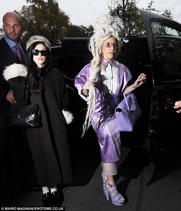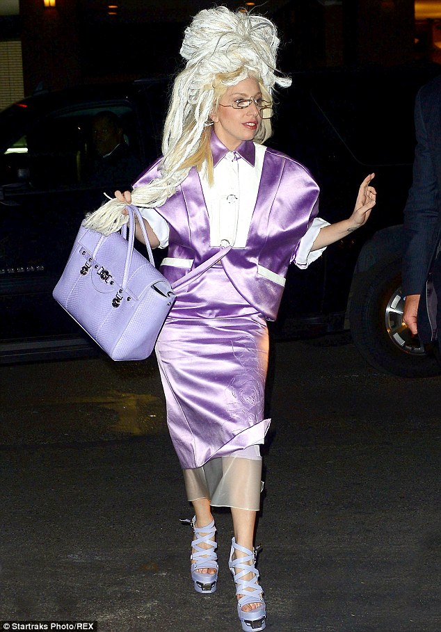 What can you do? It’s Lady Gaga in the only way we all know Lady Gaga to style a very unique looking pair of shoes to color coordinate her outfit.