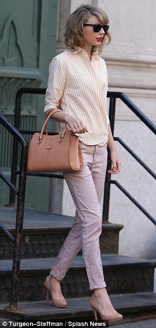 It was a beautiful sunny spring day for Taylor Swift. The award winning singer was seen out and about enjoying her day in New York City in pastel spring colors, complete with nude color platform pumps and matching ladylike handbag. Sheer elegance and grace, a perfect ensemble!